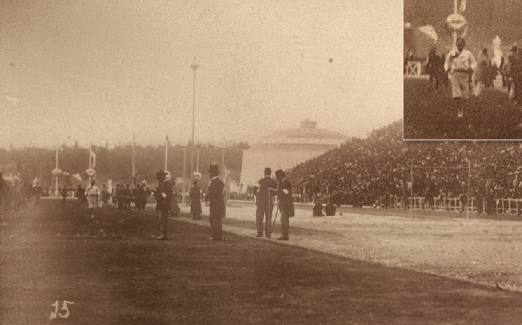 *Φωτογραφία: Ο τερματισμός του Χαρίλαου Βασιλάκου στους Ολυμπιακούς της Αθήνας το 1896. Φωτογραφία από το αρχείο της οικ. Ιωάννη Λαμπάκη.