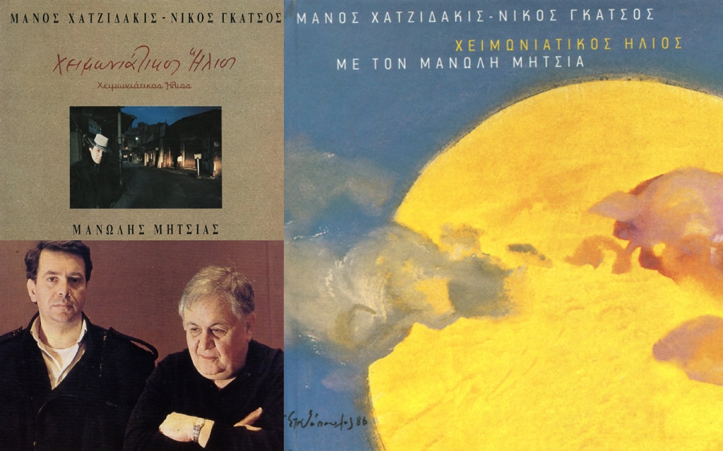 Τον Δεκέμβριο του 1986, παραμονές των Γιορτών, ένας κατακίτρινος χειμωνιάτικος ήλιος πάνω σε έναν γαλάζιο ουρανό, ζωγραφισμένος με τα πινέλα και τα χρώματα του Γιώργου Σταθόπουλου, εμφανίστηκε στις προθήκες των δισκοπωλείων, εκείνη την όχι και τόσο μακρινή εποχή που ακούγαμε μουσική από τους δίσκους βινυλίου. Ο «Χειμωνιάτικος ήλιος» του Μάνου Χατζιδάκι και του Νίκου Γκάτσου με τον Μανώλη Μητσιά μας ξαφνιάζει γιατί δεν είναι η πρώτη φορά που κυκλοφορεί. Μερικούς μήνες νωρίτερα, τον Απρίλιο του 1986, τον έχουμε δει με άλλο εξώφυλλο αλλά με τα ίδια τραγούδια.