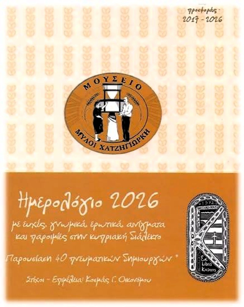 Ένα ημερολόγιο για το 2026, καταγραφής 40 Κυπρίων πνευματικών δημιουργών, με ευχές, γνωμικά, στίχους, ερωτικά αινίγματα και παροιμίες στην κυπριακή διάλεκτο, το οποίο επιμελείται (απο το 2017 που πρωτοεκδόθηκε) με ιδιαίτερη φροντίδα και αγάπη ο Κοσμάς Γ. Οικονόμου.