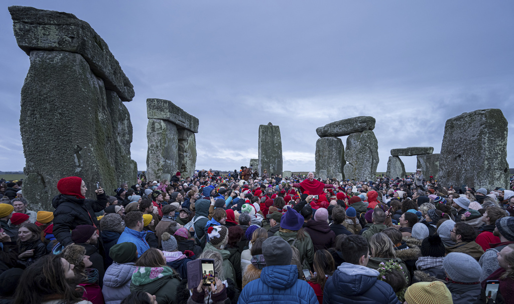 Περισσότεροι από 8 χιλιάδες άνθρωποι συγκεντρώθηκαν σήμερα Κυριακή (21/12) στο μεγαλιθικό μνημείο του Στόουνχεντζ, στη νοτιοδυτική Αγγλία, για να γιορτάσουν το χειμερινό ηλιοστάσιο, τη μικρότερη ημέρα του χρόνου στο βόρειο ημισφαίριο.