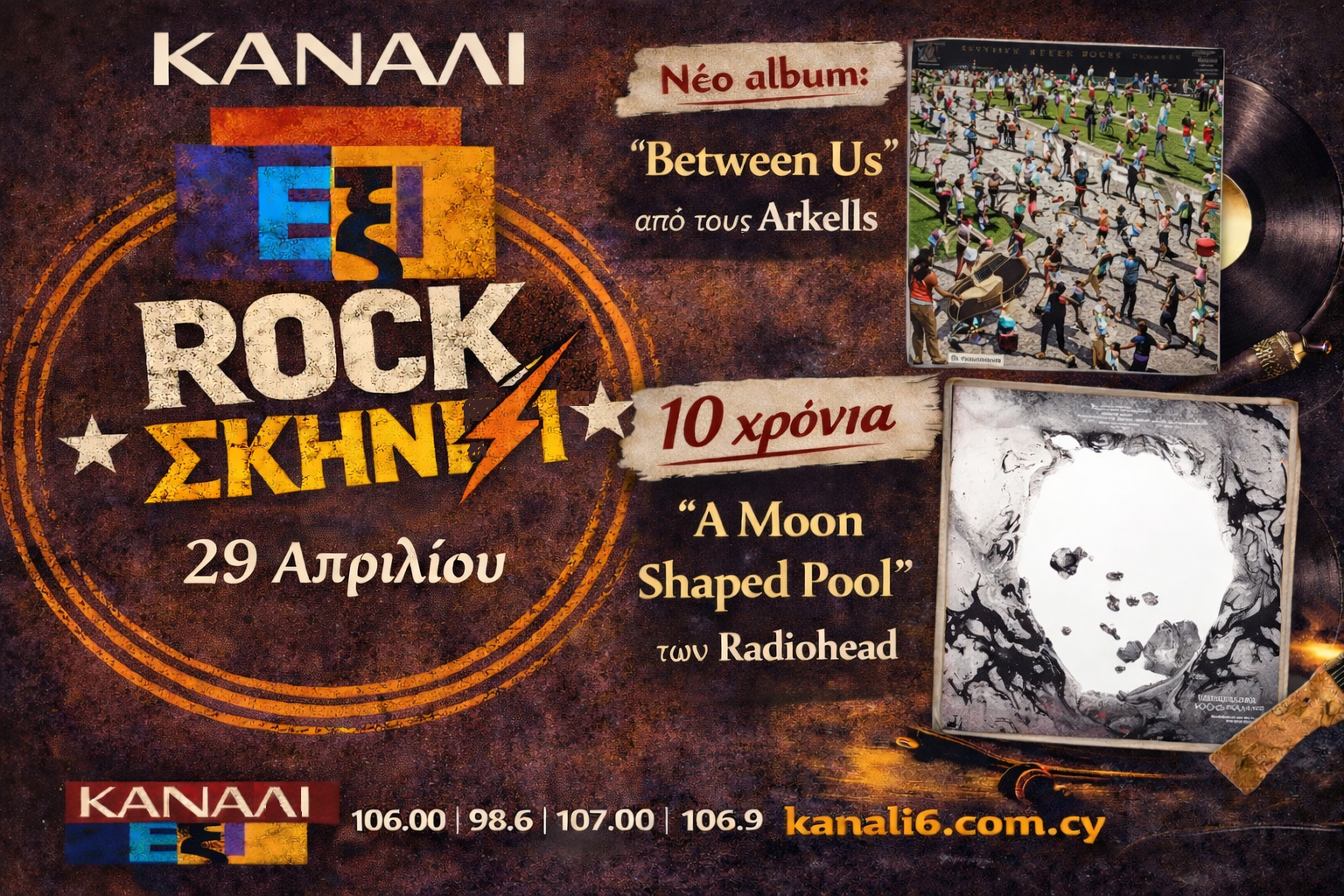 Αυτή την Τετάρτη, 29 Απριλίου, παρουσιάζουμε το καινούριο album του καναδέζικου συγκροτήματος Arkells που φέρει τον τίτλο Between Us, συνεχίζουμε το ένθετο για τους μήνες Απρίλιο και Μάιο στο οποίο ακούμε το πρόσφατο live album του Steven Wilson, Impossible Tightrope: Live in Madrid, ενώ στη δεύτερη ώρα παρουσιάζουμε το 10χρονο τελευταίο για την ώρα album των μοναδικών Radiohead, A Moon Shaped Pool.