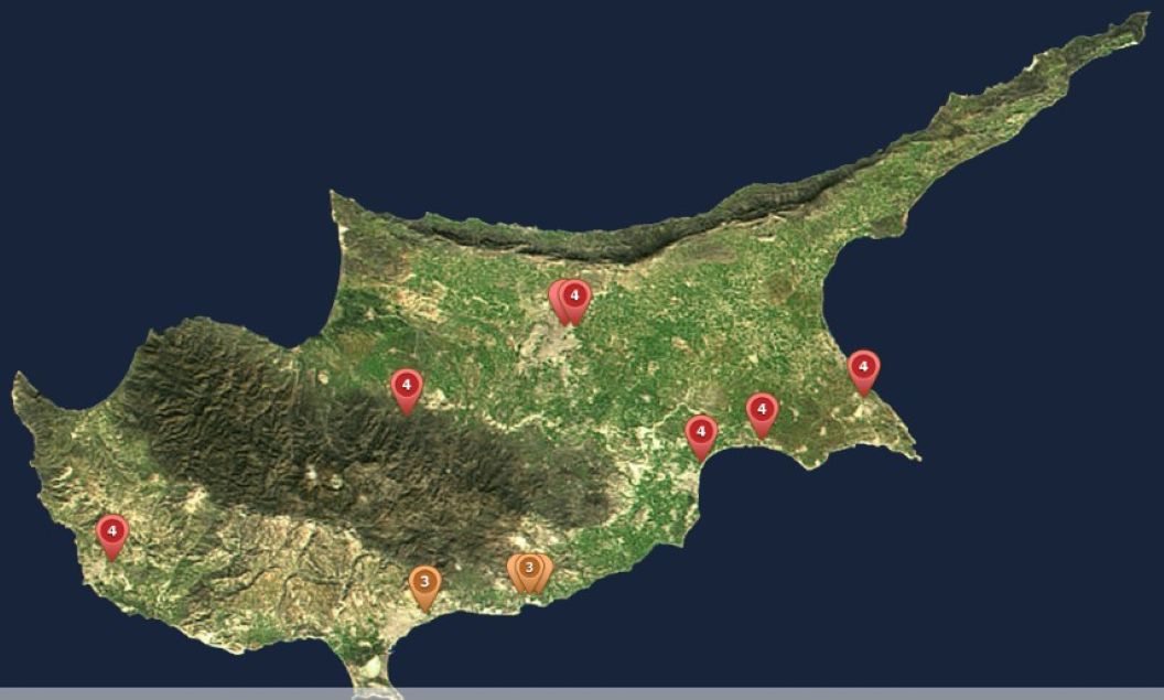 Στη Λευκωσία καταγράφηκαν 1.167,7 μg/m³ (PM10) και 363,7 μg/m³ (PM2.5), στη Λάρνακα 481,3 μg/m³ (PM10) και 127,2 μg/m³ (PM2.5), στο Παραλίμνι 326,4 μg/m³ (PM10) και 89,8 μg/m³ (PM2.5), ενώ στον Βιομηχανικό Σταθμό στο Ζύγι οι τιμές ήταν 191,8 μg/m³ (PM10) και 38,6 μg/m³ (PM2.5).