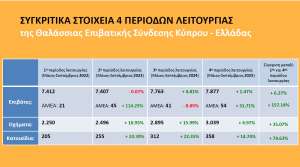 Όπως ανέφερε, η γραμμή, που επαναλειτούργησε με πρωτοβουλία της Κυπριακής Δημοκρατίας, έχει πλέον εξελιχθεί σε έναν ουσιαστικό θεσμό, καλύπτοντας πραγματικές ανάγκες πολιτών που επιλέγουν να ταξιδεύουν δια θαλάσσης, ενώ παράλληλα συμβάλλει στην ενίσχυση της συνδεσιμότητας της Κύπρου με την Ελλάδα και την ηπειρωτική Ευρώπη.