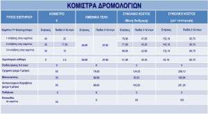 - Αεροπορικό κάθισμα: 5€ (ενήλικες), 2,5€ (παιδιά)