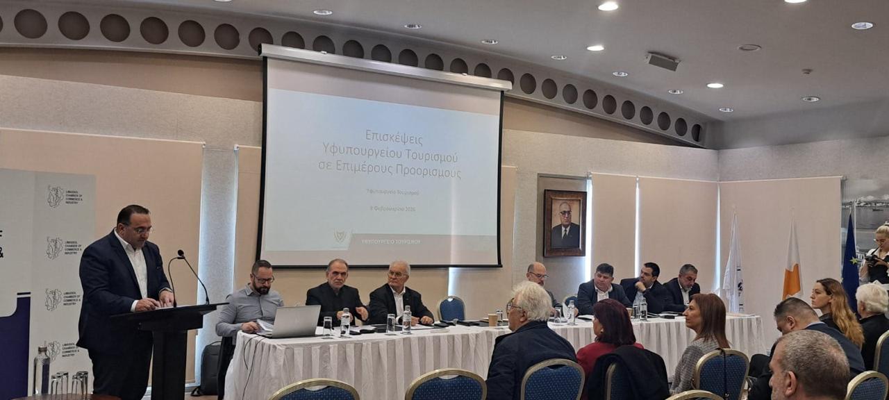 Τον σημαντικό ρόλο της Λεμεσού στον κυπριακό τουρισμό ανέδειξε σύσκεψη που πραγματοποιήθηκε στο Εμπορικό και Βιομηχανικό Επιμελητήριο της πόλης, παρουσία του Υφυπουργού Τουρισμού Κώστα Κουμή και του Προέδρου της ΕΤΑΛ και του ΕΒΕΛ Ανδρέα Τσουλόφτα, των τεσσάρων δήμαρχων της ευρύτερης Λεμεσού κι άλλων παραγόντων.