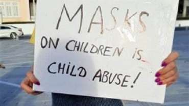 Ανάμεσα στους πολίτες, που συγκεντρώθηκαν για να διαμαρτυρηθούν βρίσκονται γονείς με τα παιδιά τους, που κρατούν πανό και φωνάζουν συνθήματα, μεταξύ άλλων, κατά της χρήσης μάσκας και της διενέργειας τεστ στα παιδιά.