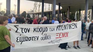 Οι συμμετέχοντες συγκεντρώθηκαν στο χώρο στάθμευσης του ΓΣΟ και πορεύονται προς την περιοχή του παλιού λιμανιού